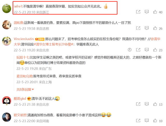在长沙岳麓分局工作人员回应之后,清华大学直接采用钢铁直男式回应:“学籍库查无此人”。啪啪打脸长沙岳麓分局,不少网友表示清华大学不愧是清华大学,回应都这么直接。