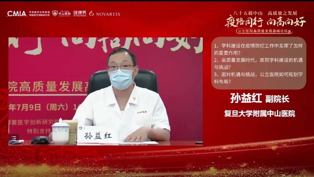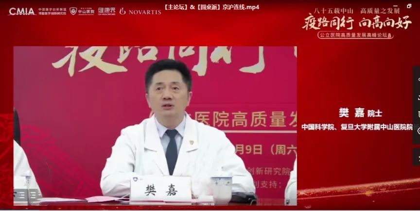 近日,由复旦大学附属中山医院联合海南博鳌医学创新研究院和健康界共同主办的“疫路同行、向高向好”公立医院高质量发展高峰论坛,以线上线下结合的方式成功举办。来自国内40余个知名公立医院的管理专家相聚云端,围绕疫情防控、学科建设、医疗服务、智慧医院、药学服务等话题开展热烈讨论,深度挖掘公立医院高质量发展的内涵。