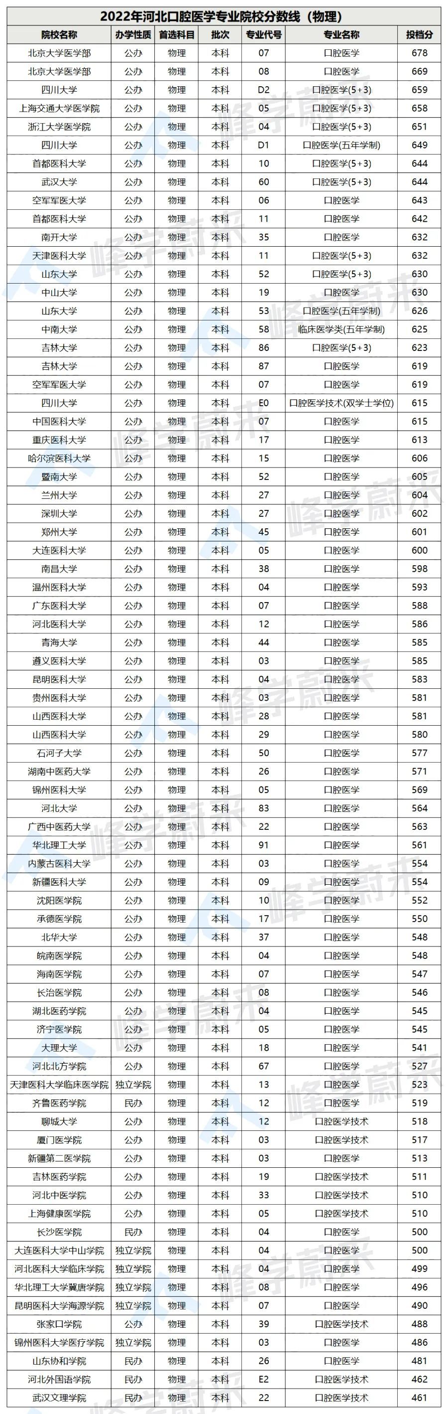 附22年河北省口腔医学专业录取分数线,仅供考生和家长作为参考。
